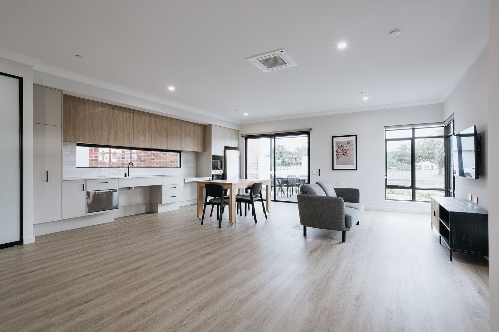 Individual dwellings feature a spare bedroom for guests, storage, support workers or an ILO model, with an enclosed undercover garage. The larger 2-bedroom home for sharing features private ensuite, and courtyard to each bedroom, allowing for privacy or connection as desired.
